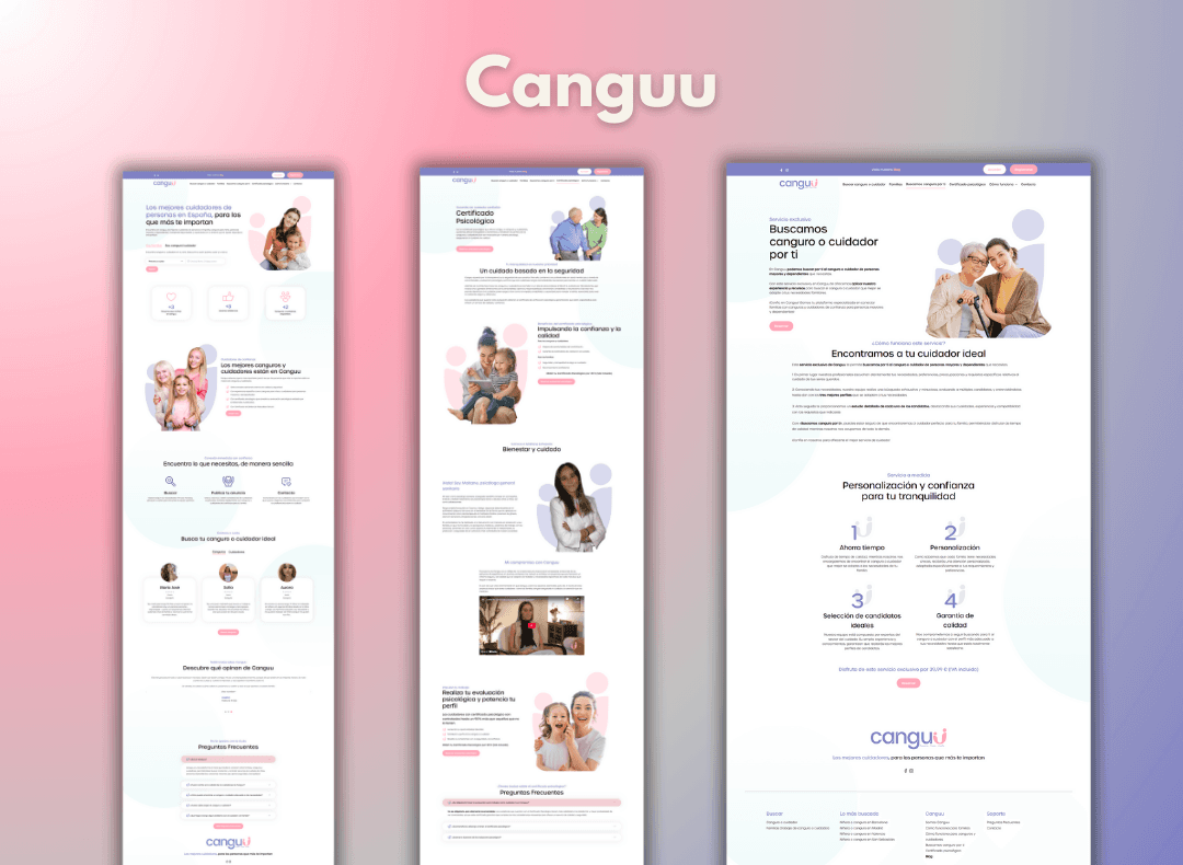 Canguu (canguu.es) opera en el sector del cuidado de niños y personas mayores, facilitando el encuentro entre familias y cuidadores de confianza. Su objetivo es ofrecer una plataforma sencilla, segura y accesible donde los cuidadores puedan mostrar sus servicios y las familias puedan encontrar el apoyo que necesitan en su día a día.