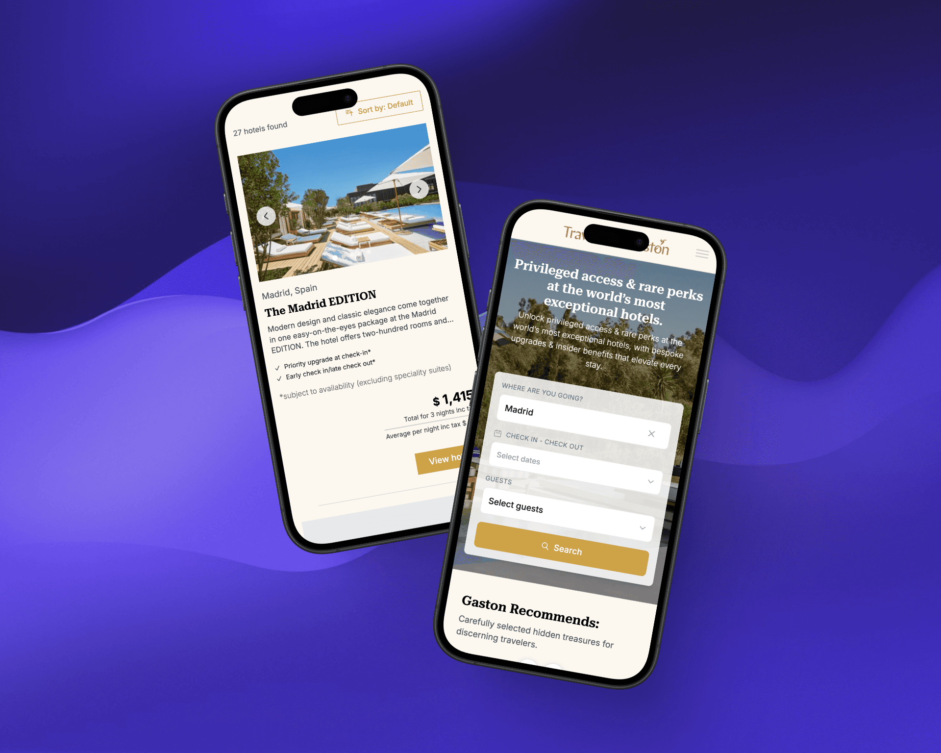Travel with Gaston opera en el sector de viajes y ocio como una plataforma global de comercio electrónico que conecta a viajeros con hoteles y proveedores de alojamiento de lujo. Su misión es ofrecer una experiencia de reserva fluida, confiable y premium para un público exigente que busca calidad y exclusividad.